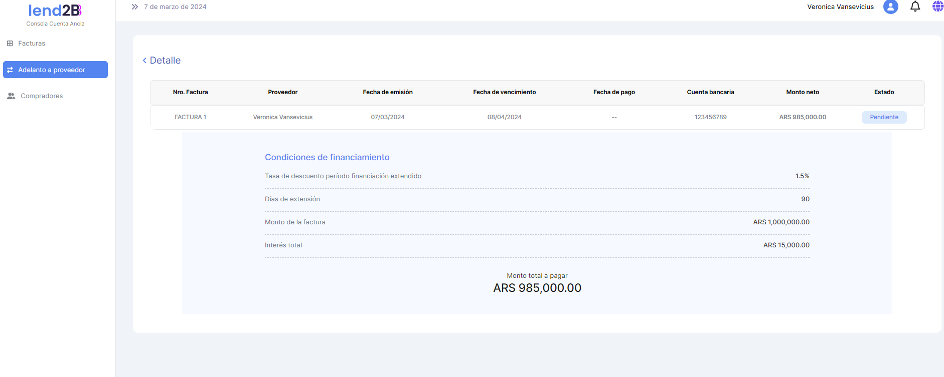 En nuestro esquema esto quiere decir que el Importe a considerar para el calculo de un Préstamo extendido, refinanciado o incluso los importes por mora es la Factura.