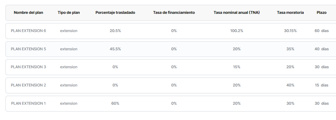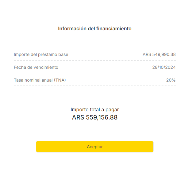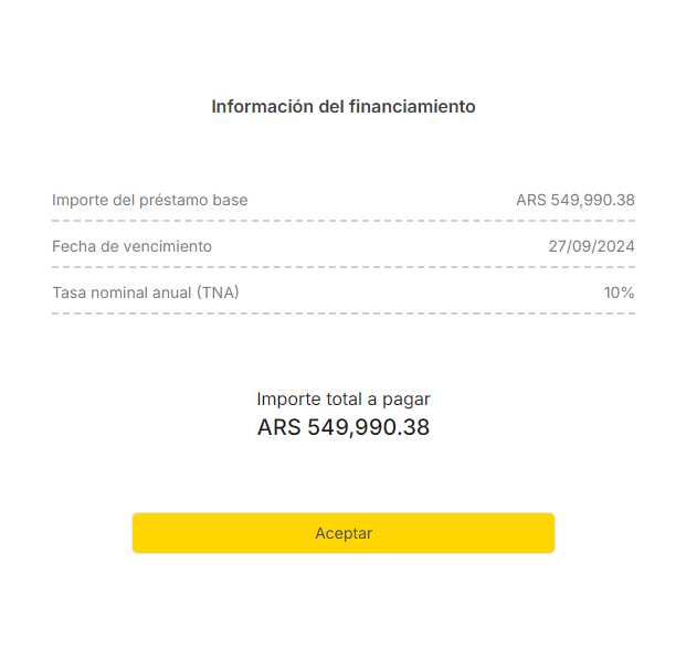 Al seleccionar el presente plan estas solicitando el otorgamiento por parte del lender, siempre que tengas disponible en tu línea de crédito, de un préstamo extendido a [Plazo del plan] días desde el [Fecha de vencimiento Plan Base] debiendo cancelarlo en la fecha informada.