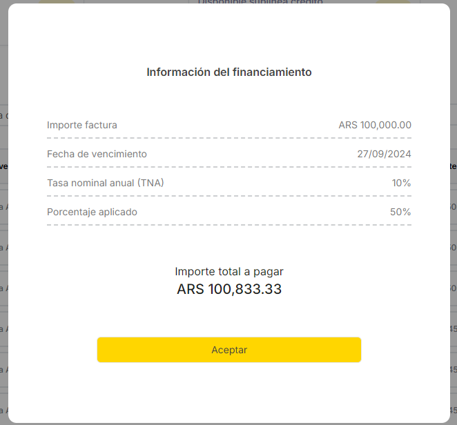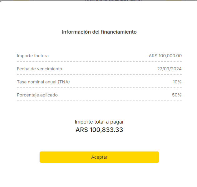 Importe del Préstamo base = Importe de la factura + Intereses por financiación