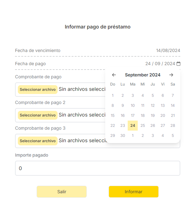 La acción de informar el pago de un préstamo implica el cambio de estado del Aprobado o Moroso a Pago informado. Esto implica que el pago esta pendiente de validación por parte del Lender