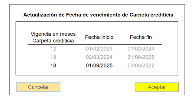 Fecha de vencimiento (en ambas Consolas). Debe ser la fecha de vencimiento de la ultima cuota, es decir, la de finalización de la obligación