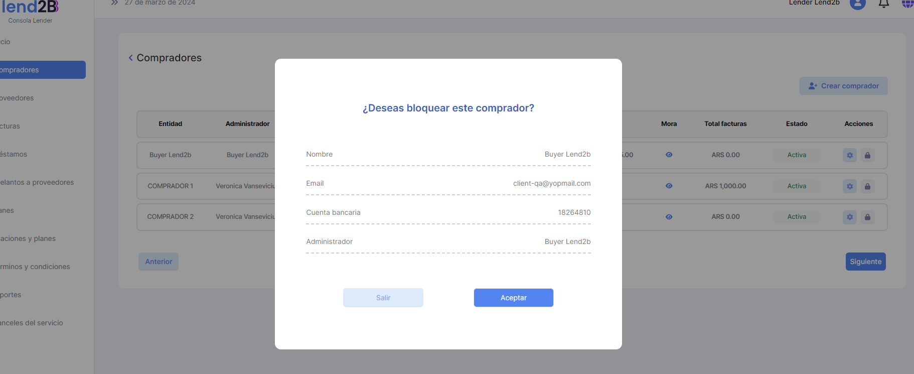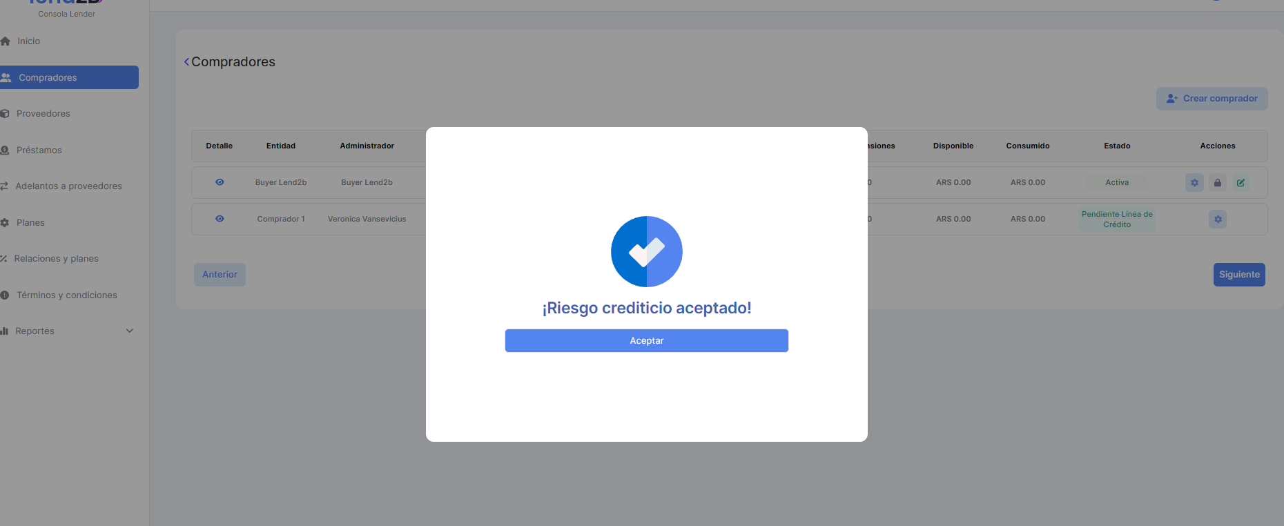 Cuando el Comprador informa el pago, el Lender recibe la tarea para la confirmación del mismo.