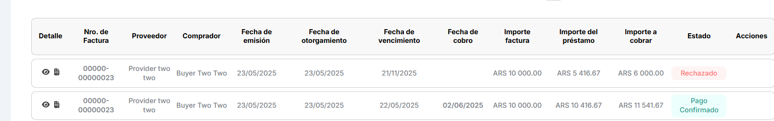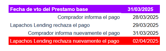 Importante: Aun si el Lender NO verifica el pago de la cuota del Préstamo en su cuenta bancaria, el Préstamo pasa igualmente al nuevo estado Pago cuota confirmado, además de: