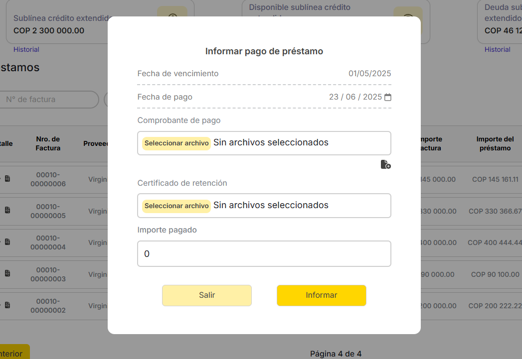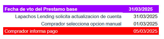A medida que se van pagando las cuotas, ya sea mediante el pago informado por el Comprador o con validaciones del Lender se deben ir completando los campos correspondientes