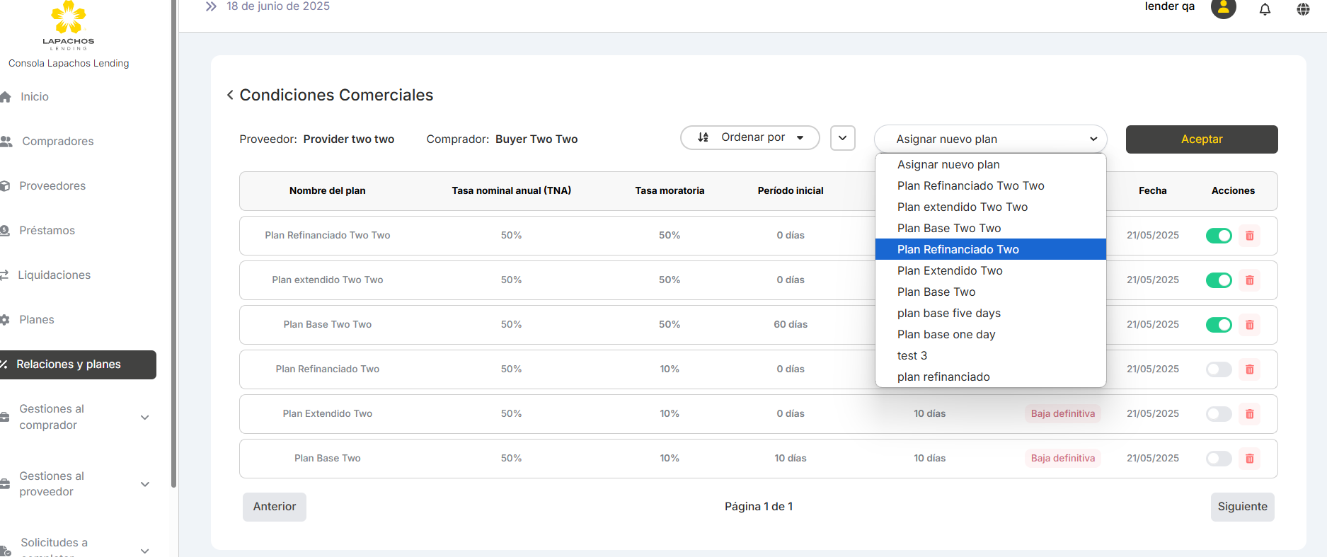 Cuando una Relación tiene asociadas mas de una Condición comercial (Plan base + extensión y/o refinanciación) se permite otorgar extensiones y/o refinanciaciones.