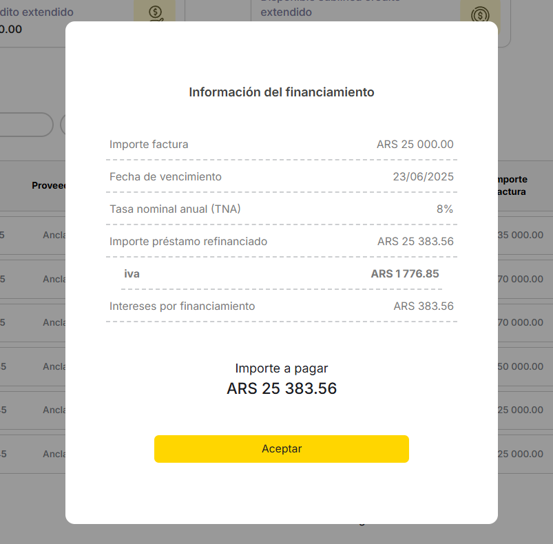 Fecha de vencimiento de la Liquidación por parte del Proveedor: Fecha de emisión de la Factura + Período inicial. NO hay cambio en cuanto a la operatoria actual