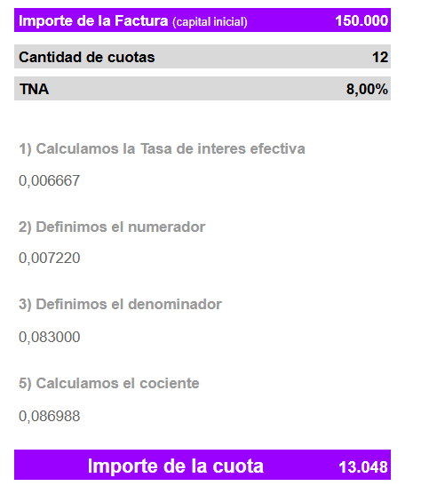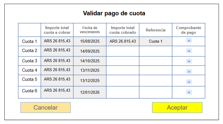 En el Sprint 32 se aclaró que al menos en una primera etapa solo utilizaremos el Sistema francés que se caracteriza por cuotas mensuales iguales a lo largo de todo el plazo del préstamo.