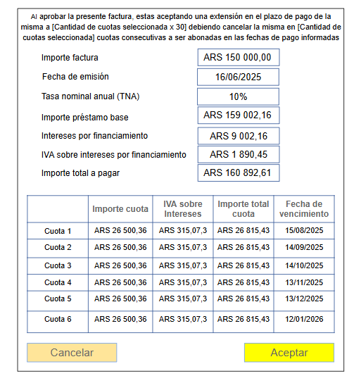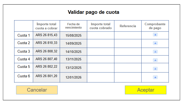 En este campo se debe seleccionar el esquema a utilizar para definir la forma en la que se paga un préstamo a lo largo del tiempo cuando el mismo se define con pago en cuotas. Existen diferentes opciones pero al menos en una primera etapa se debe mostrar: