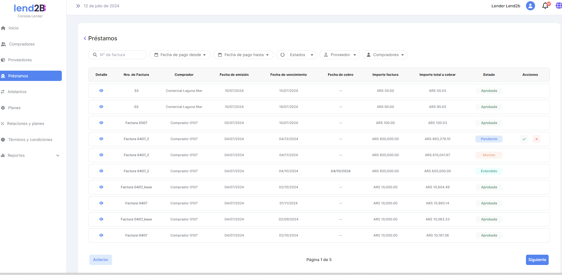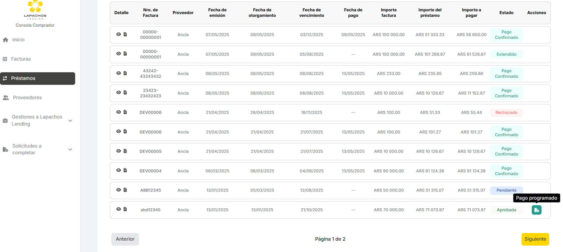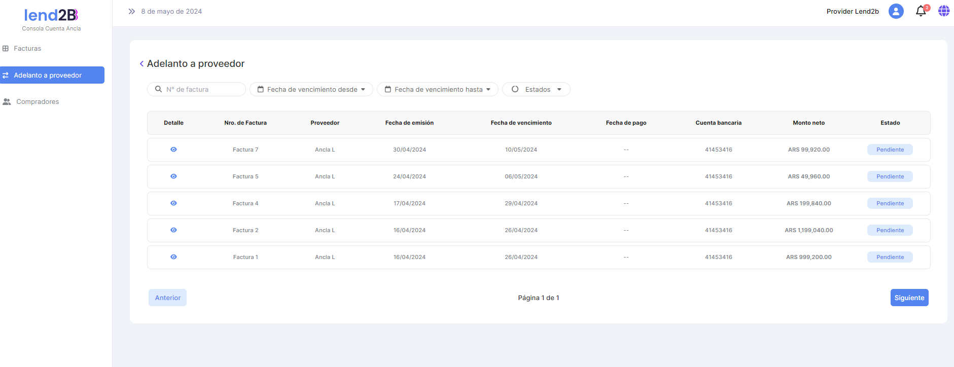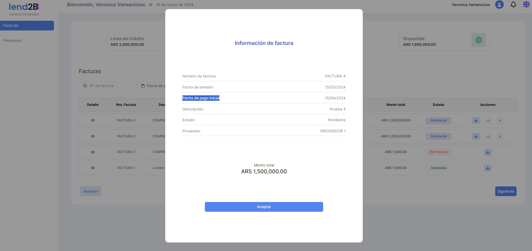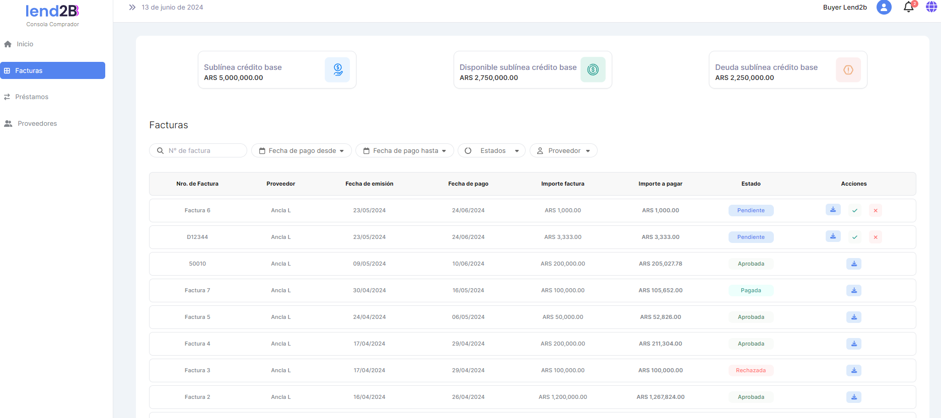 Para el modelo actual (B2B WC) ---> Se cargaran y aprobaran Facturas generando Prestamos y sus correspondientes flujos de pago.