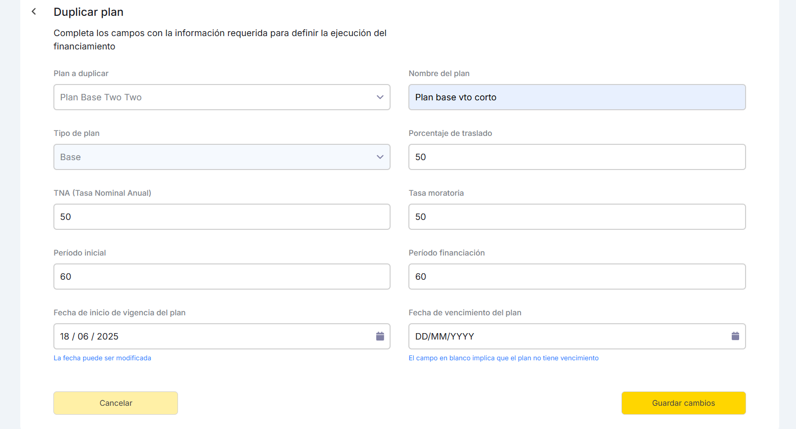 Al seleccionar Crear Modelo de negocio se debe acceder a una pantalla similar a la del alta de un Lender