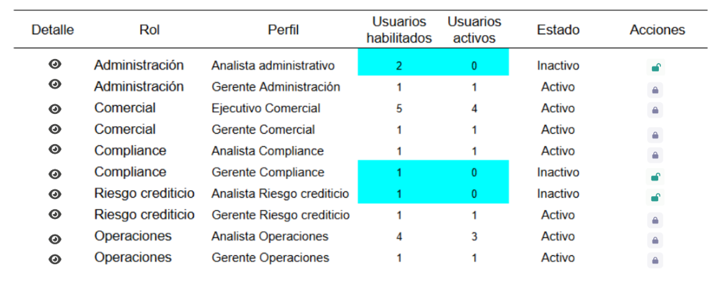 Estado. Al menos en una primer instancia solo debe estar como Activo.