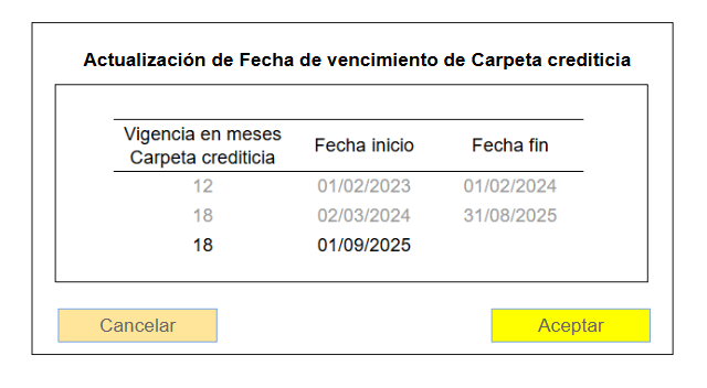 La falta Oferta crediticia implica que el Cliente no puede solicitar un financiamiento. Se debe mostrar un modal similar al siguiente: