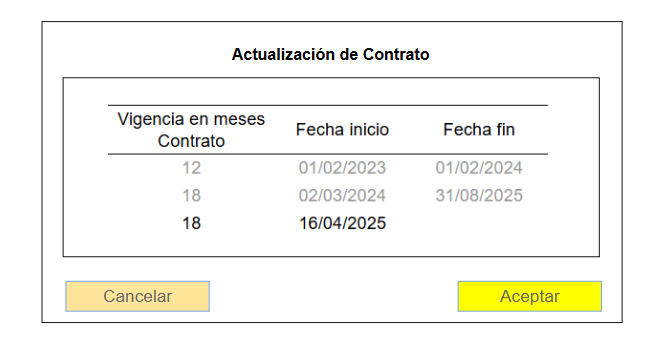 Vigencia en meses contrato. Aplican mismas validaciones que para el Modelo B2B WC