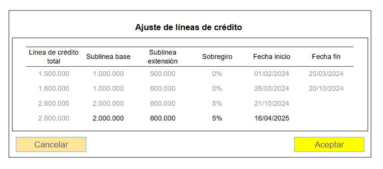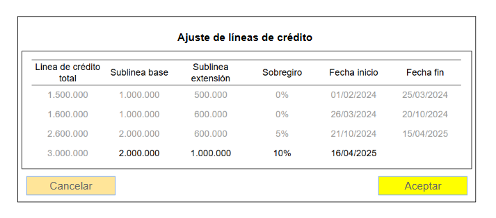 Línea de crédito. Aplican mismas validaciones que para el Modelo B2B WC.
