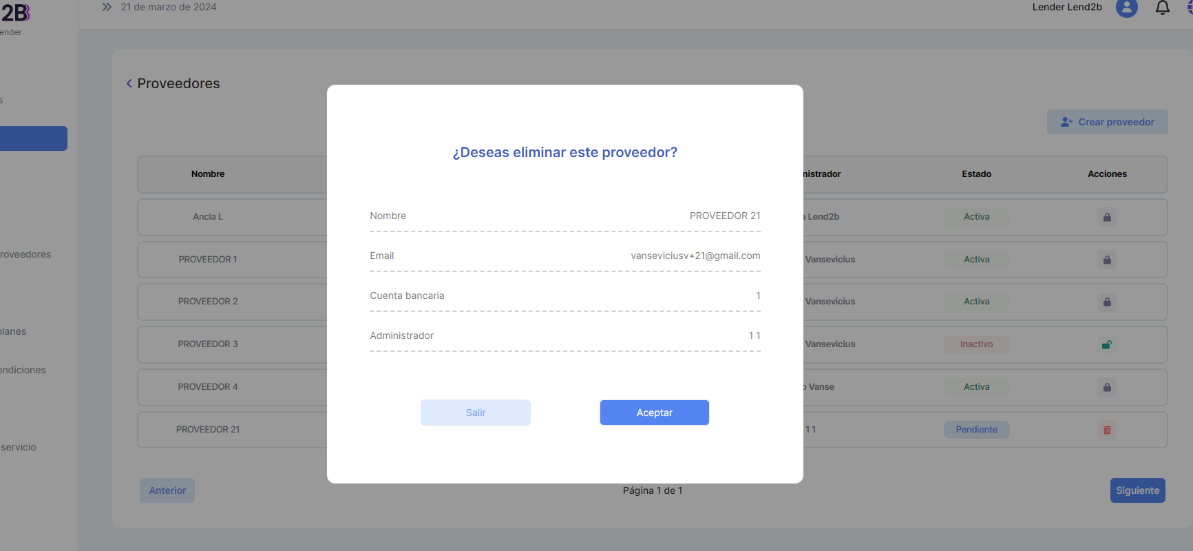 Al Aceptar el registro en la sección Prestamos debe mostrar el estado Rechazado y con el sub estado Identidad no validada.