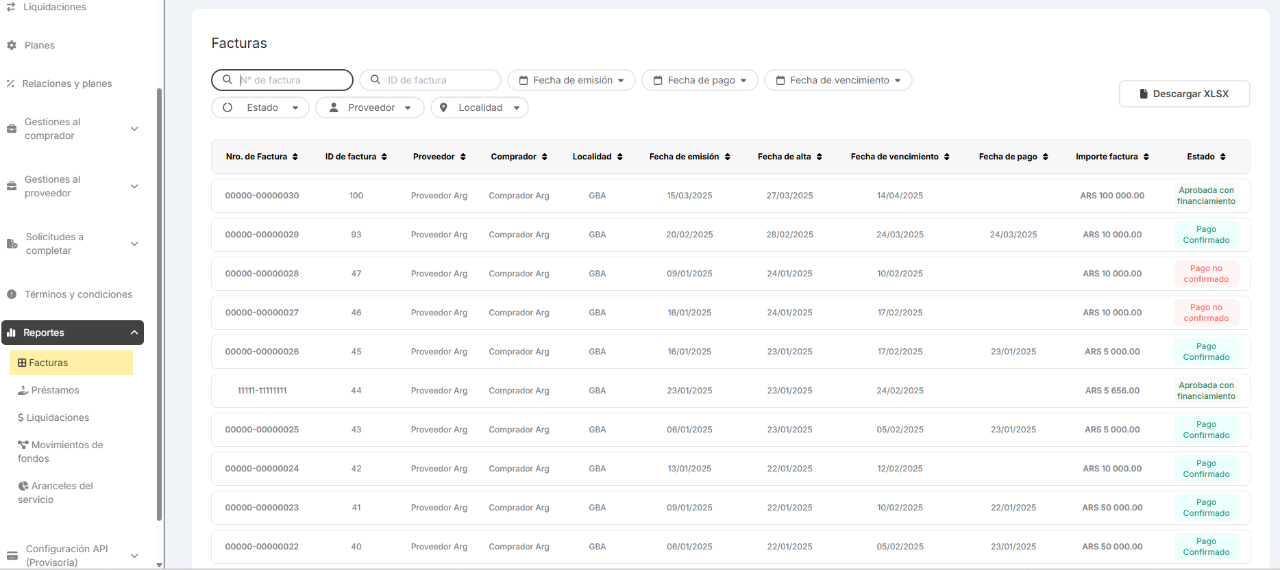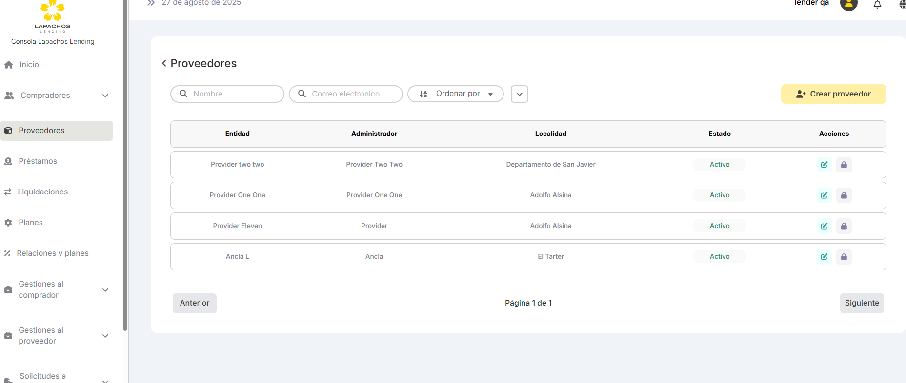 Importante: La sección Clientes del Menú NO incluirá acciones posibles por parte del Lender. Esto implica que solo permitirá visualizar los Clientes generados por los diferentes Comercios.