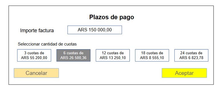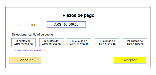 Cuando el Cliente selecciona el Plan se debe desplegar el esquema de cuotas a abonar: