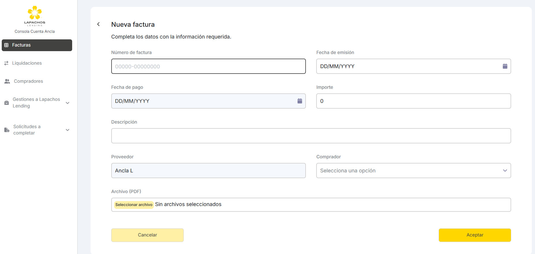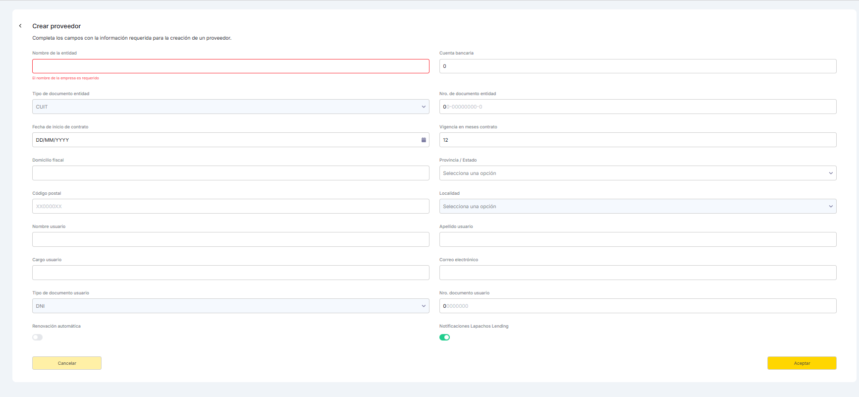 Todos los campos son obligatorios. Si no se completan no es posible avanzar a la siguiente epata del proceso