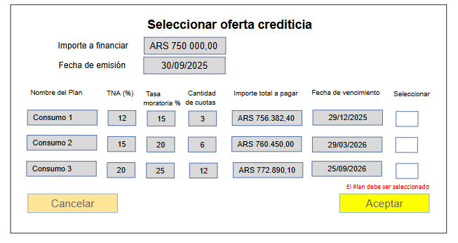 Se adjunta ejemplo de calculo de ofertas crediticias