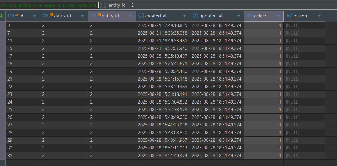Cambio de estados de proveedor, en la base de datos no esta cambiando correctamente el valor de active en entity status el proveedor termina con muchos estados en active, y eso puede generar errores