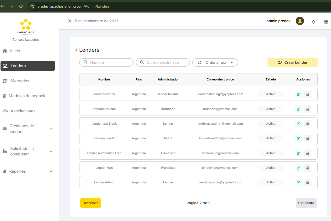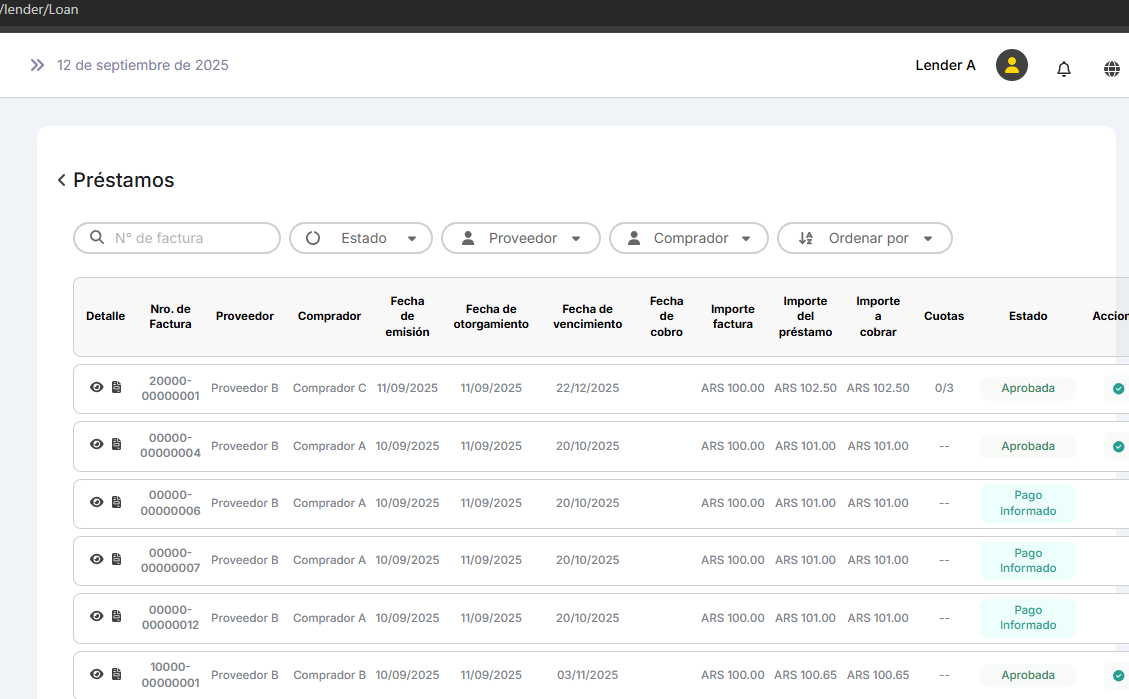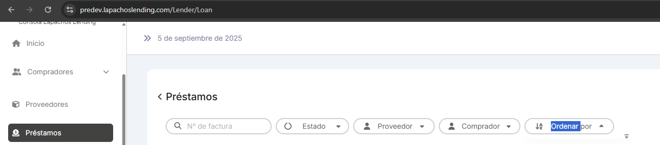 En la consola lender en el listado de Prestamos tiene el mismo comportamiento