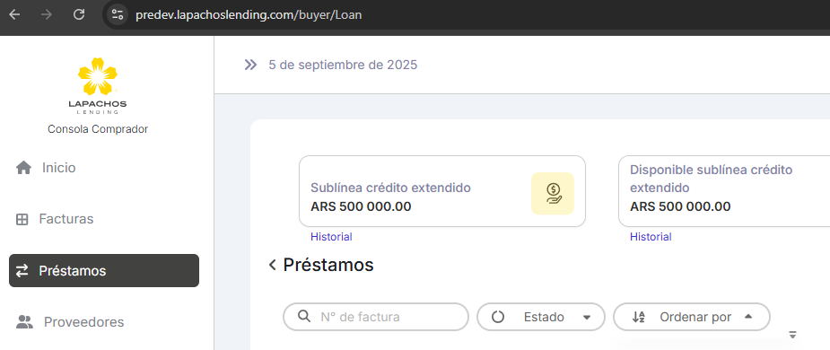 En la consola Comprador se presenta el mismo funcionamiento, en el botón Ordenar por desde la vista de Prestamos.