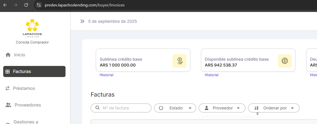 En la consola Comprador se presenta el mismo funcionamiento, en el botón Proveedor desde la vista de Facturas.