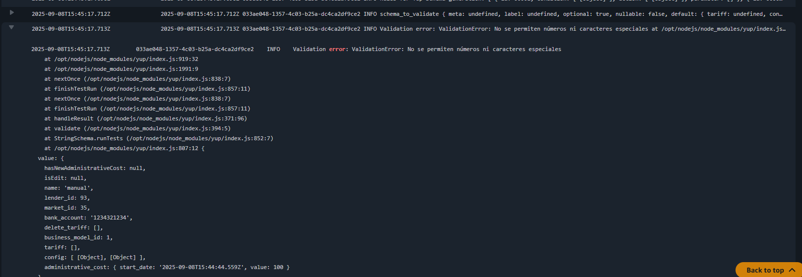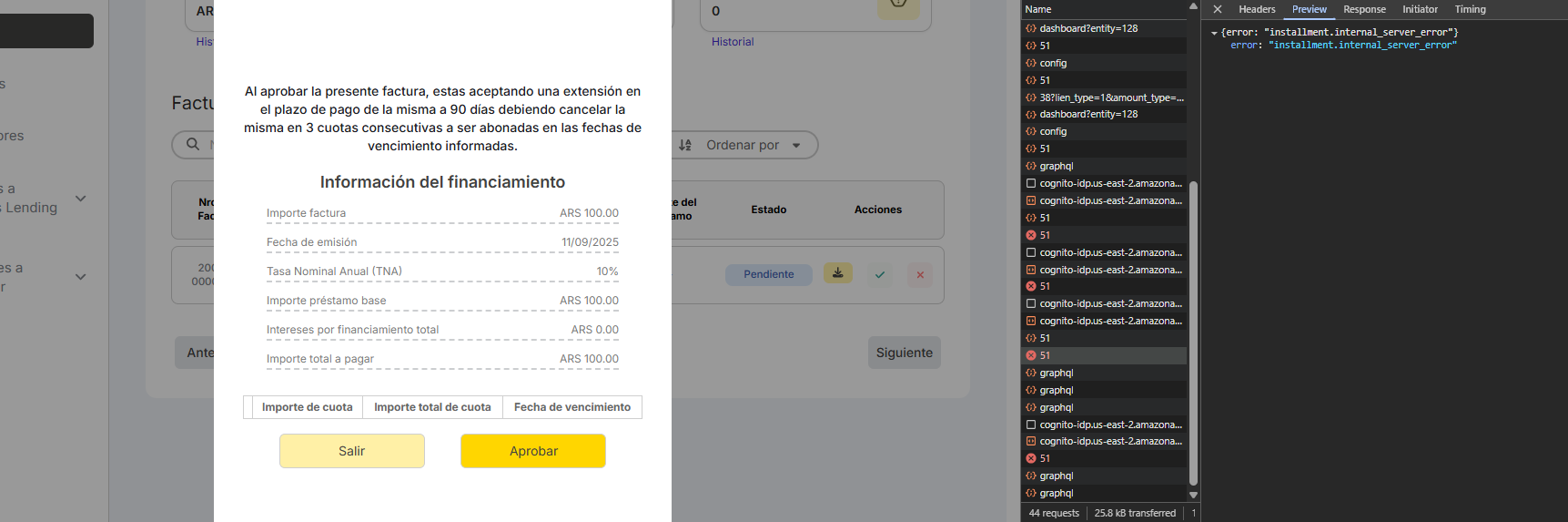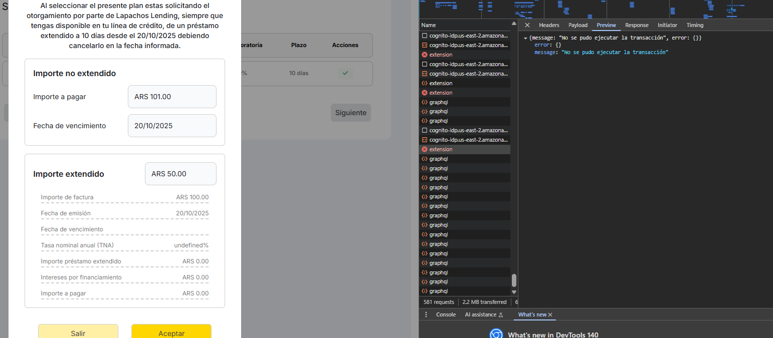Al Solicitar una extensión sale el valor del TNA en el modal “undefined”