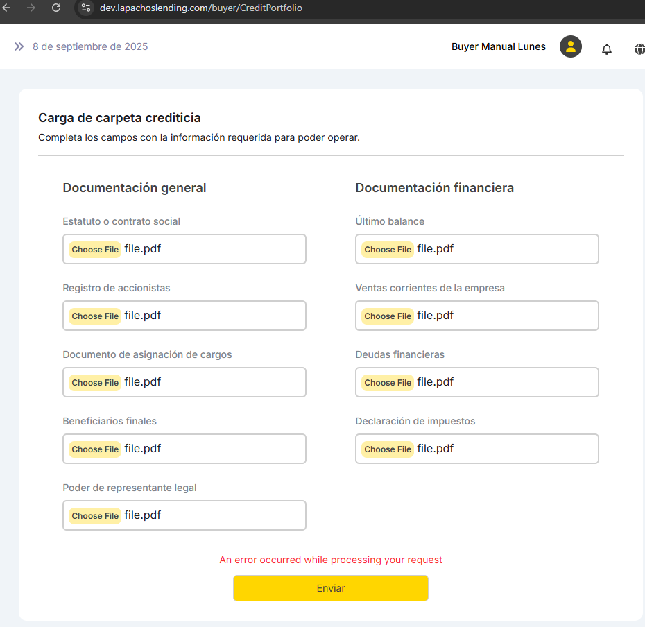 Carga de carpeta crediticia
