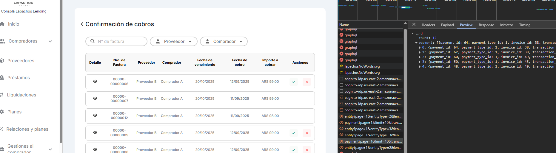 Confirmación de cobros, no esta llegando la data completa. Llega un count con valor de 12 y se listan 5.