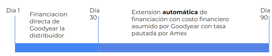 Financiación directa Goodyear (Cuenta Ancla): periodo entre el momento de la emisión de la factura y el momento de vencimiento original de la misma. Es un periodo único y fijo.