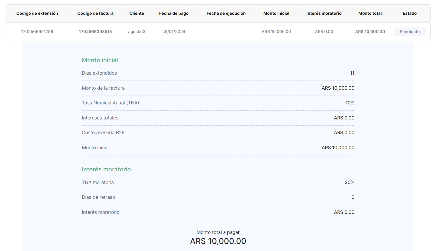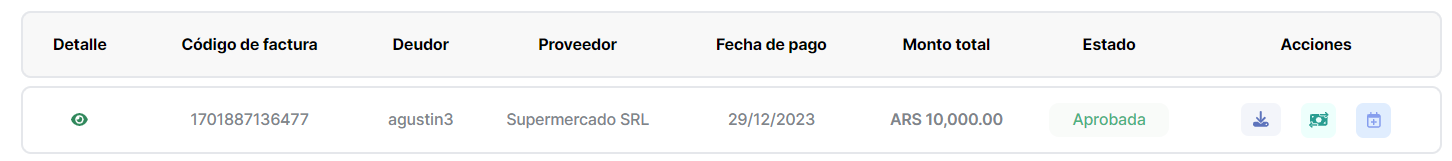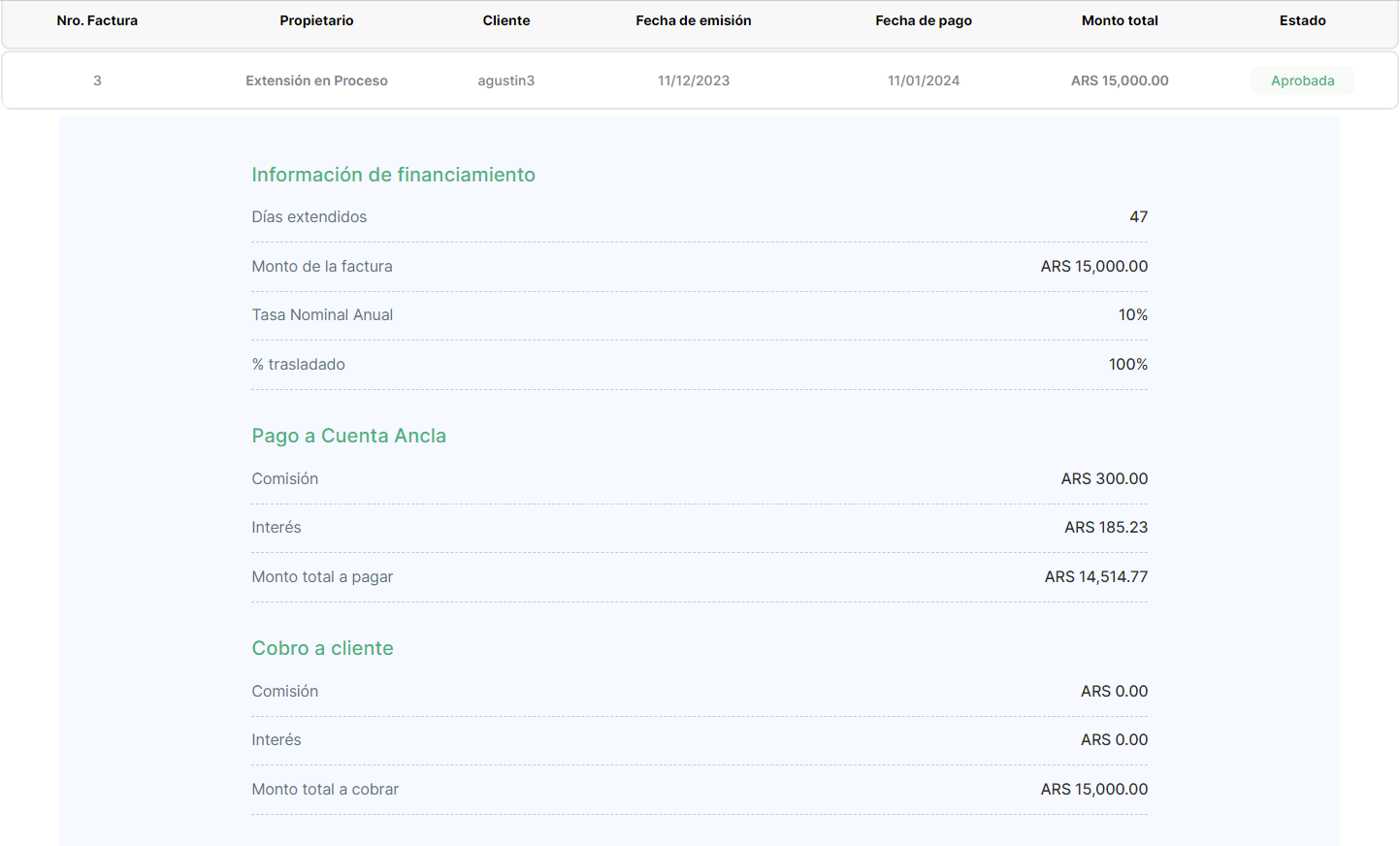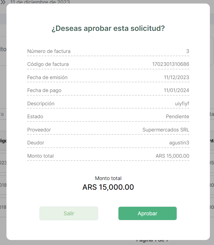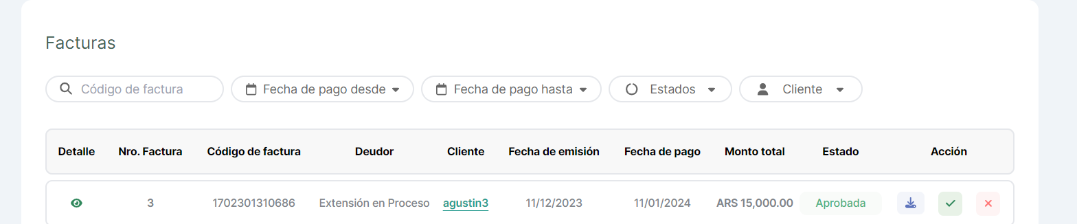 Luego de la aprobación de una factura, al Cliente se le activaban las funcionalidades para Extender o Pagar la factura.