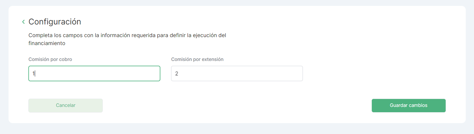 Seguirán existiendo ambas variables, la comisión de cobro y la comisión de extensión. Ambos siguen siendo porcentajes que pueden tomar números con coma. En caso que el valor configurado sea 0 entonces ese comisión no deberá aparecer, en el momento que corresponda.